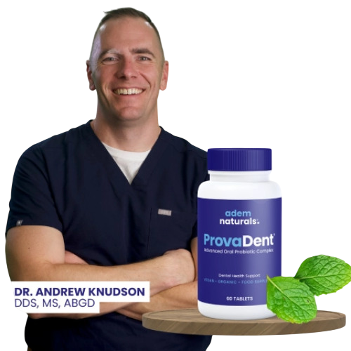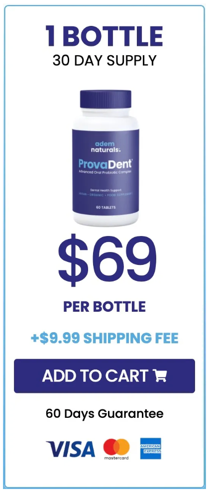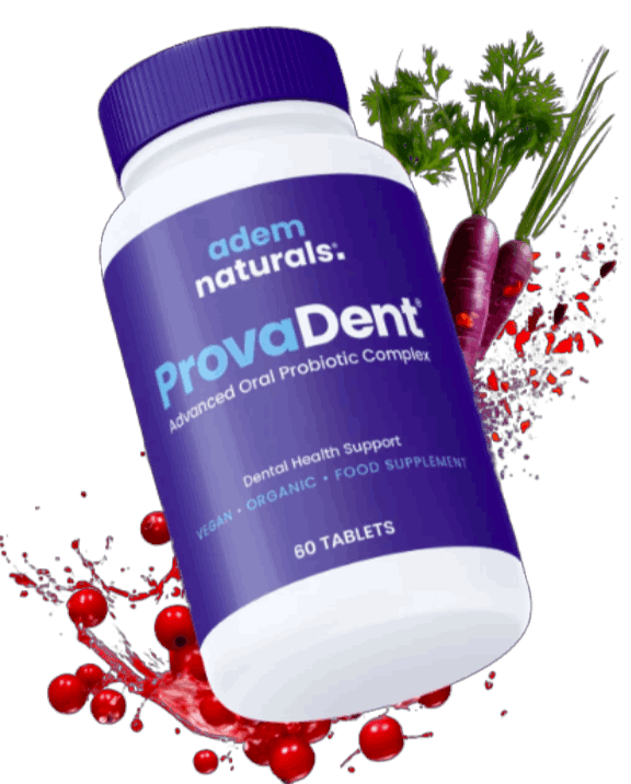 ProvaDent is a natural oral health supplement that supports a balanced mouth microbiome, fresh breath, and strong teeth and gums. Its blend of probiotics, antioxidants, and plant-based ingredients helps prevent plaque, reduce bad breath, and improve overall dental health.